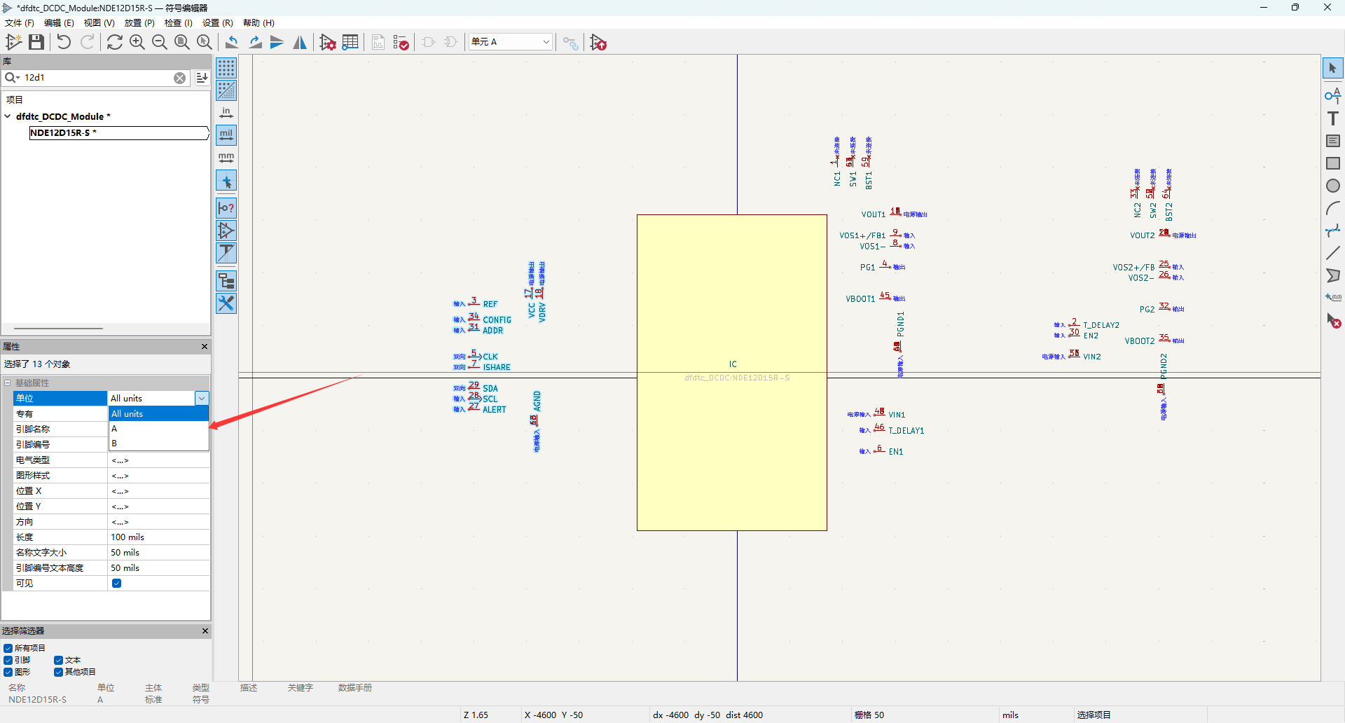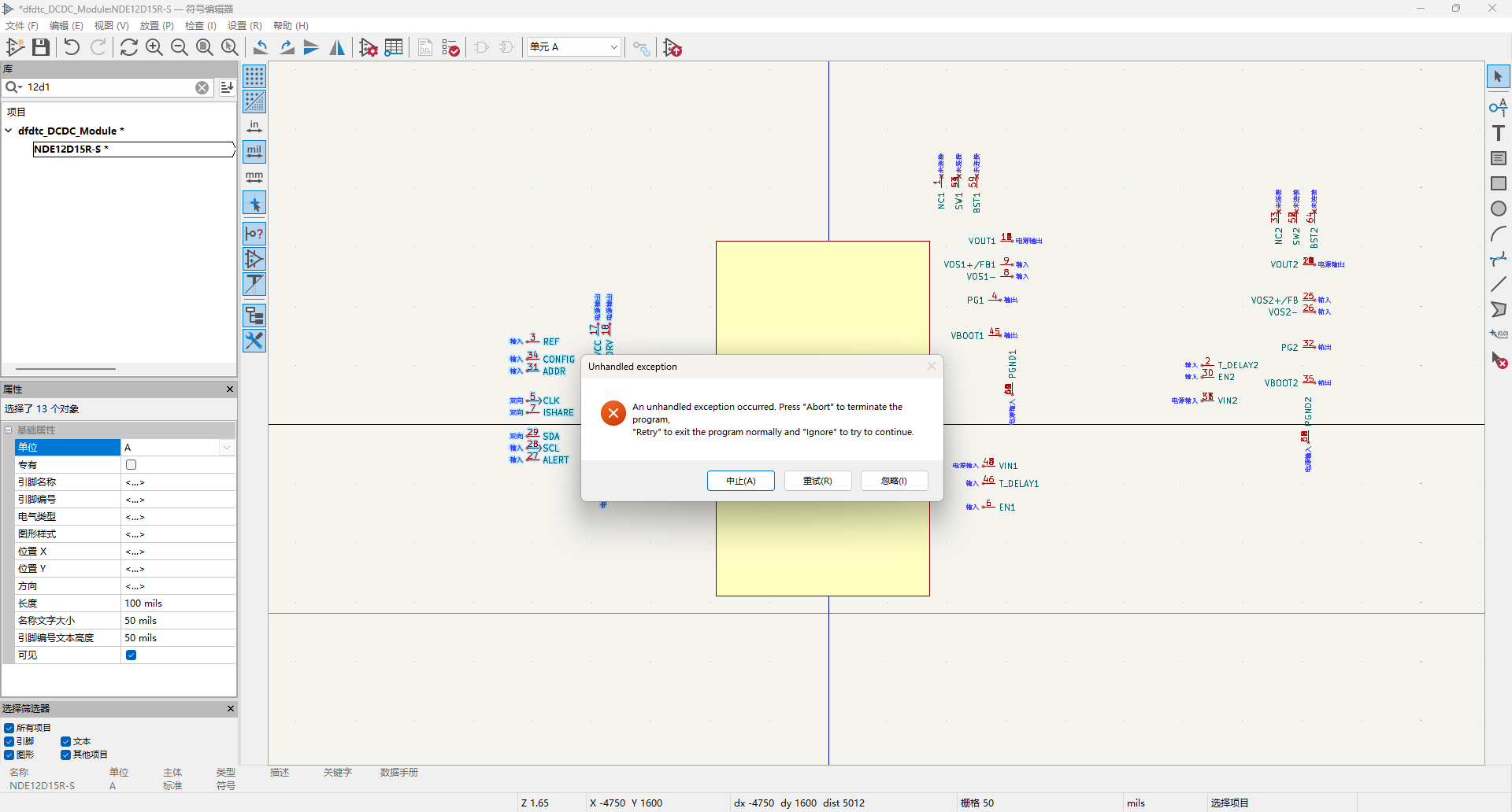 This is a new discovered problem in 9.0.5. I have not catch this problem in 9.0.4 and 9.0.3. The action which try to change pins’ unit belonging will stably triggering this error in my PC. It’s not related to quantity of selected pins. Other symbols in my lib can also trigger this problem.