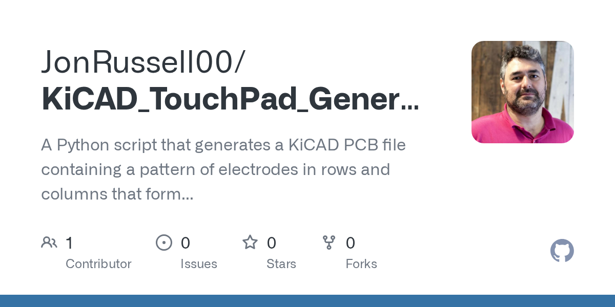 I’m building a device with a touchpad. I need a grid of pads connected as rows and columns. Rather than laboriously lay them all out by hand I wrote a python script to generate the PCB layout. It works fine. I have square copper pour electrodes connected horizontally and vertically by traces. The python script takes the various options as parameters, x & y size in mm, number of rows and columns, electrode spacing, etc.