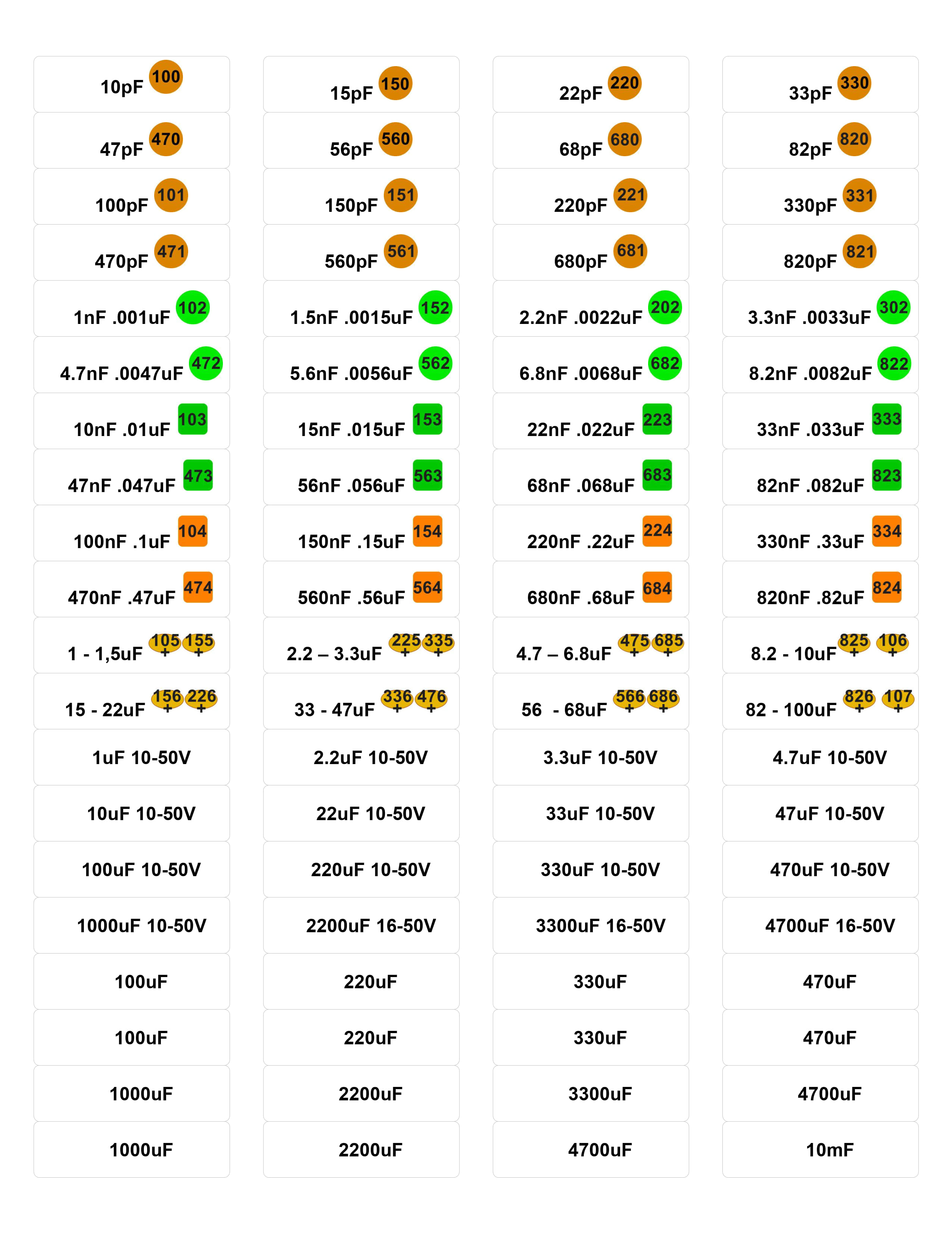 Because I am ‘old school’ I also included the number coding for capacitors