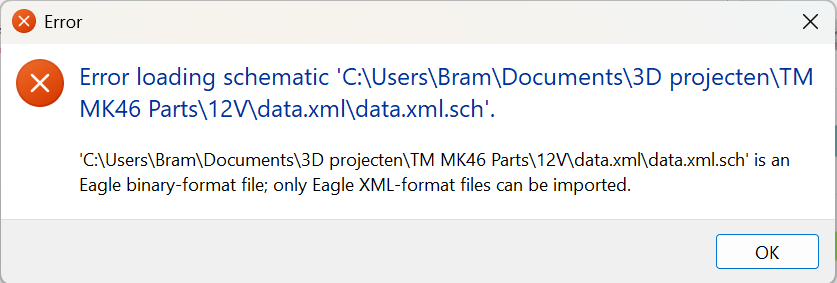 I get the same results. Importing the original upload does not work. KiCad complains with: 2025…sch is an Eagle binary format file"