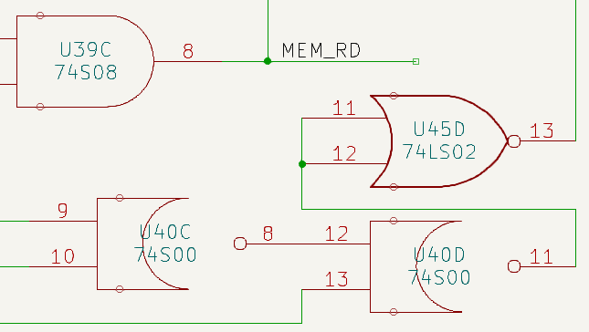 - Error: Input pin not driven by any Output pins**. There are 3 of these for U22, and one of this for U40. All four of these are because of a fault in the U39 symbol. The output pins of this 74S08 gate are set to open collector, while this gate does have totem-pole outputs.