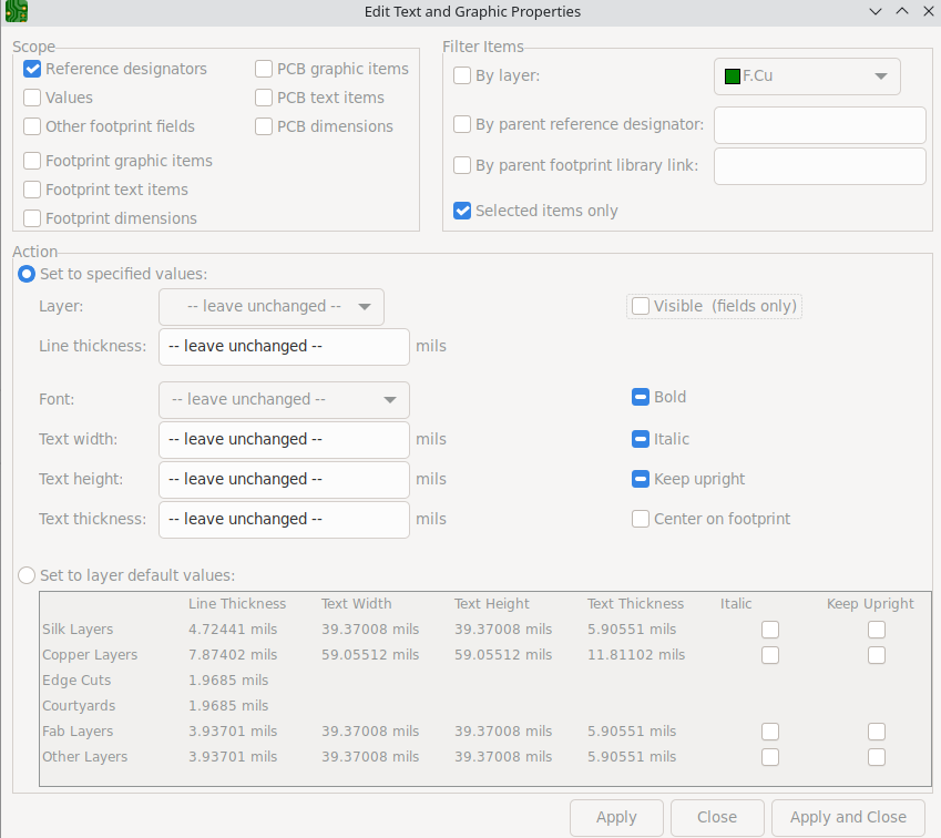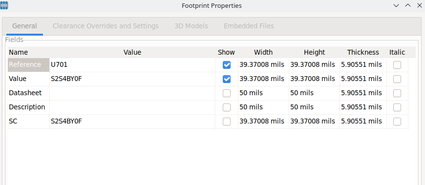 I spent some time on the Objects Tab also, but still couldn’t get what I wanted. I’m aware of the implication for the silkscreen layer, so in the end I just created my own part.