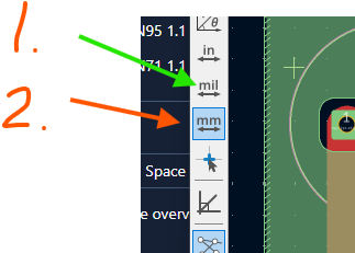 To change the unit between mm–>inch–>mil use the icon on the left toolbar.