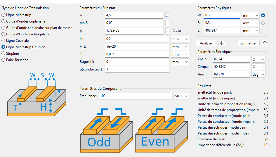 hello i try to adapt at 100 Ohm in even for ethernet to tranceiver. ANd i miss understand calculator, my best try it’s this. But i’m not sur . What is a standart for this ? Zd at 100 Ohm or Zeven att 50 Ohm ? Can you explain Z even Zodd Z diff and Angl_I please thanks