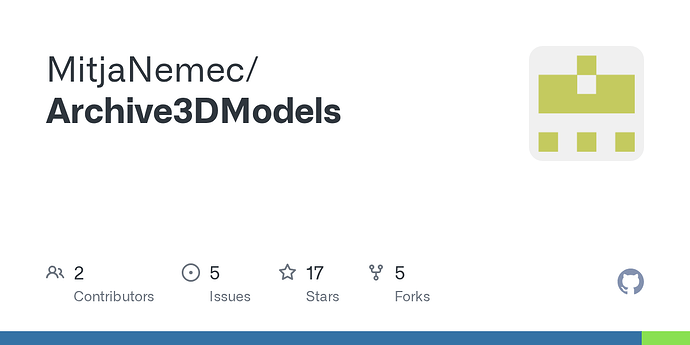 The Archive 3D plugin doesn’t work here. The plugin creates two text files, but doesn’t create a library of 3D models.