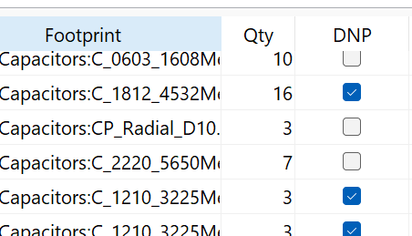 Very often, a project involves many components, but then when the board goes into production, not everything is assembled. Many different versions are made with the same PCB; this is almost standard practice. Now, how do I do it? I manually mark the components that don’t need to be assembled in the BOM and also in the PCB, so that the 3D version only shows the assembled component. I was wondering if KICAD can manage, starting from the schematic, the components that need to be assembled version by version (DNP only allows for one…), to automate a process that I currently do manually by correcting and/or turning off the unassembled component.