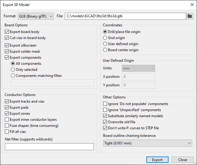 need the 3D view to export a 3D file exactly as displayed, or to export a skillscreen file that is the same size as the PCB design.