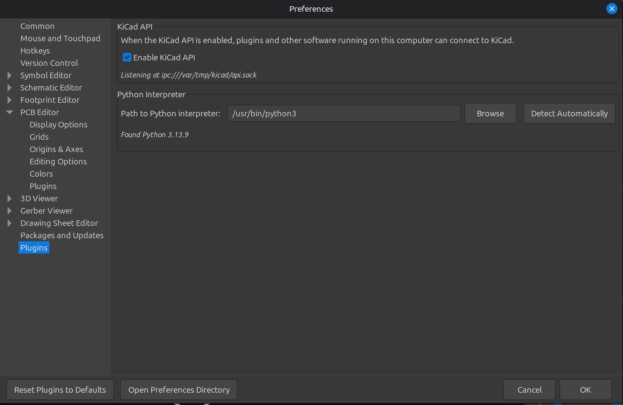 I have seen people suggest looking at the error message in the triangle icon (yellow) that pops up in Preferences > PCB Editor > Plugins, but this window is absolutely empty.