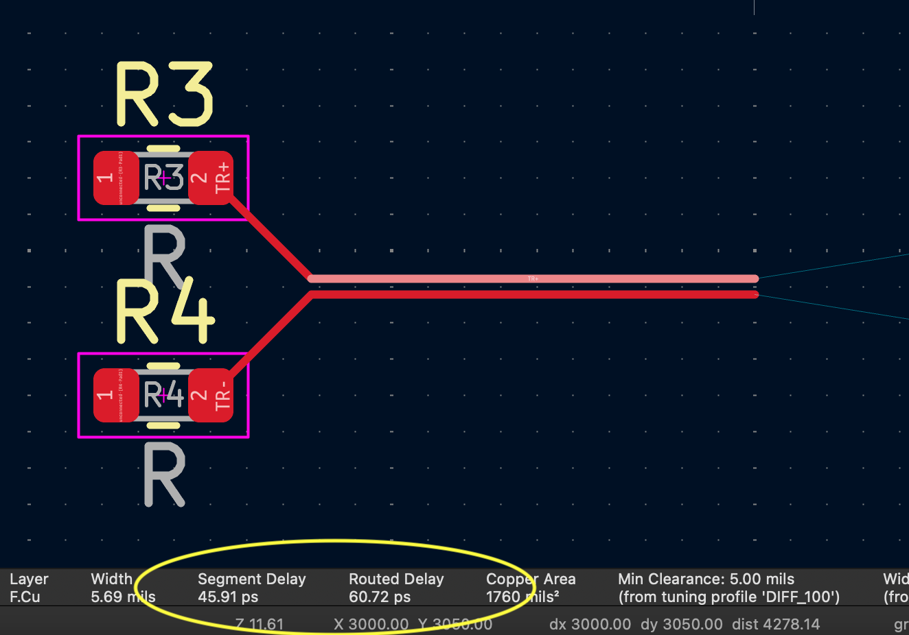 If Enable Time Domain Tuning is selected, track parameters for statistics and length / skew tuning can use the time domain tuning and DRC constraints previously implemented:
