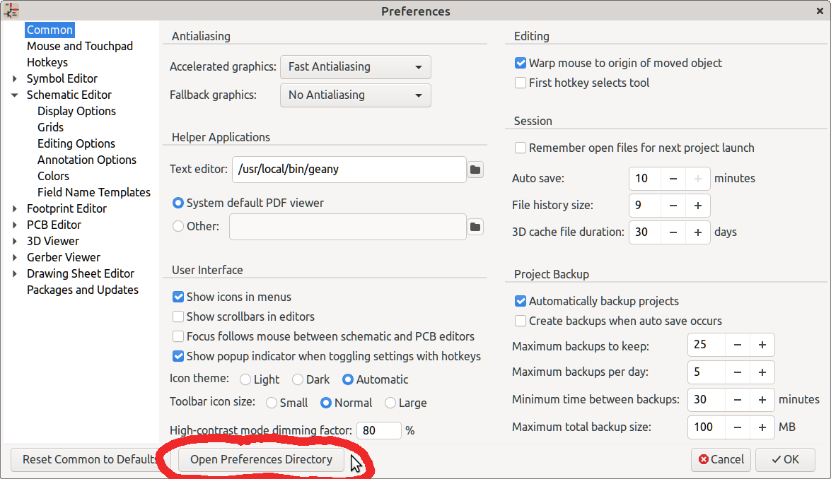 I was under the impression that the Preferences for a given design were stored in the folder that had the project files. I can’t find in the manual a good explanation of where this lives. The text %APPDATA% is used in the manual, not sure of what that expands out to in the Windows world. On both the existing Windows 11/KiCad V8 machine and the new machine, the directories in ‘Environment Variables’ for the KICAD_USER_TEMPLATE_DIR are the same, and they point to empty directories.