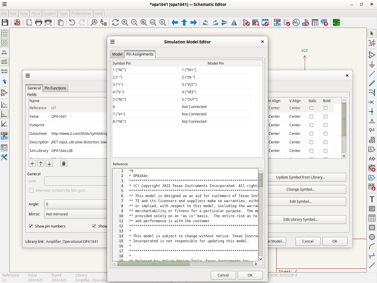KiCad is also crashing if selecting a few sub selection options in opa1641.lib in image 1 and clicking Ok.