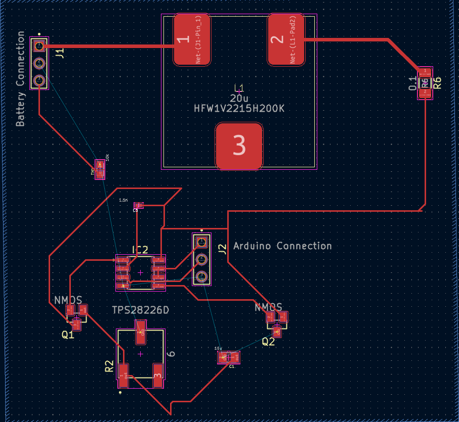 My professor advised me to use the second layer as a ground plane using vias. Have I done that correctly? I’m supposing that running a trace from the Arduino PWM signal directly under my IC isn’t a good idea. I can fix that later, and I’m taking any suggestions.