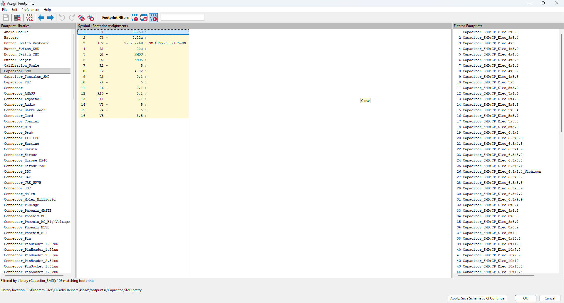 Hello all, I am trying to design a PCB from a schematic I’m at the step where I have to assign footprints. What should my considerations be with all of these options? For example, 5x5.3 or 3x5.4? Should I use these default footprints, or would I be better off finding the components on Digikey and finding the specific footprints on SnapEDA?