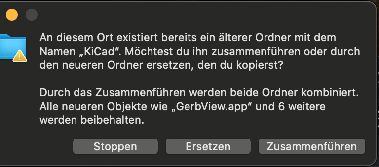 An older folder named “KiCad” already exists at this location. Do you want to merge it or replace it with the newer folder you are copying?