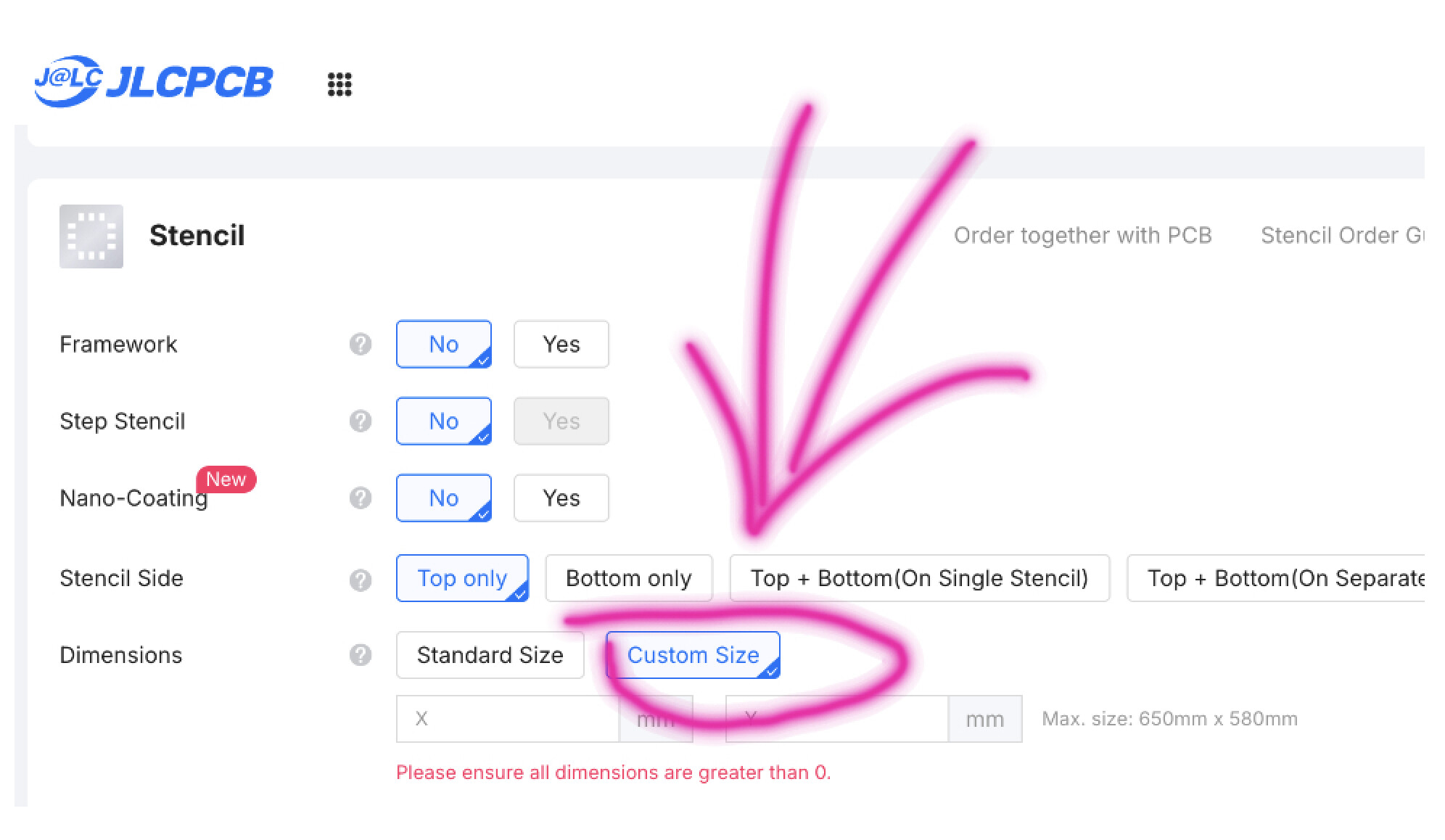 JLC offers the option to trim your stencil to any size. This will also save you shipping cost.