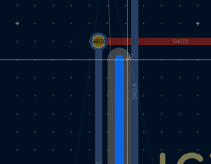 I am having a problem routing a track - it would appear that there is a large clearance rule (I assume that is what the semi-transparent area is around the track). The track is 0.25mm thick making the clearance a similar value I would guess.