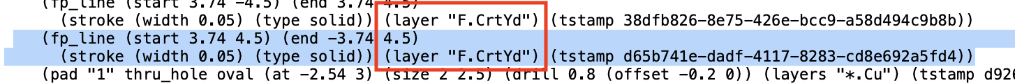If opening the PCB in a Text-Editor, what gets listed for a Footprint’s Courtyard Layer?