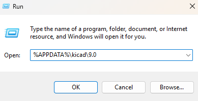 C: → users → lab → appdata → Roaming → kicad → 9.0